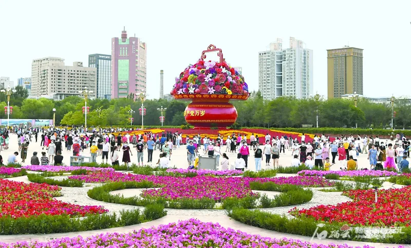 ▲市民在乌鲁木齐南湖市民广场跳舞,乐享夏日。(图片来源:石榴云/新疆日报记者 汤永 摄)