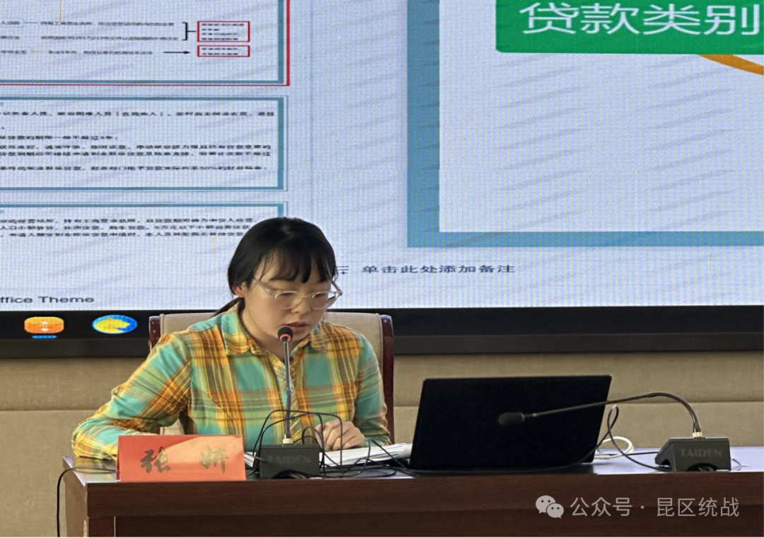 昆区就业服务中心创业服务股张妍作“创业担保贷款”政策讲解。