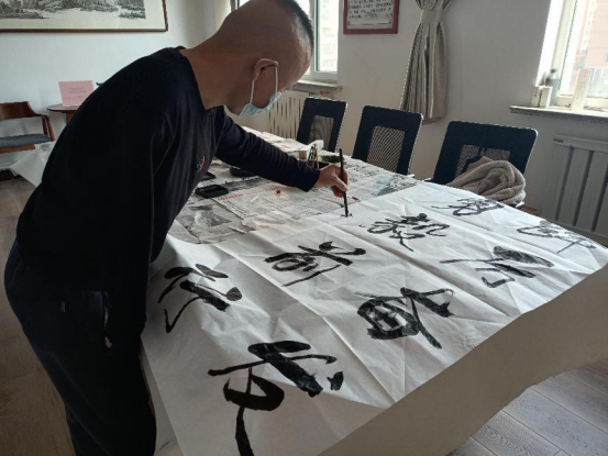 于成军以“庆祝党的二十大胜利召开”为主题,创作的书画作品讴歌新时代,传递正能量,展现了新时代残疾人的良好精神风貌。