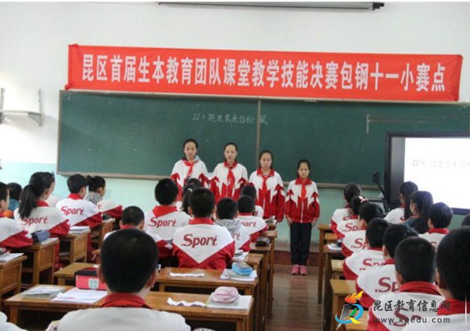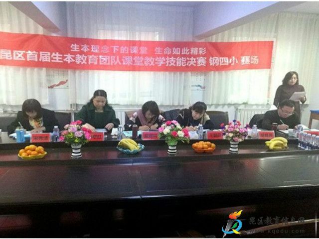 为了营造良好的生本实验研究氛围,践行“教—学—评”一致性的教学策略,进一步推进生本教育的研究进程。2016年12月初,昆区教研中心成功举办了“昆区首届生本教育团队课堂教学技能大赛决赛”。 教研中心屈丽明副主任和其他六位来自生本实验校的领导作为评委,依次在包钢十小、包钢十一小、钢四小、包钢九中实验校比赛赛点,对15个生本团队进行了公正的量化评分及精彩的现场点评和专业的研究指导。