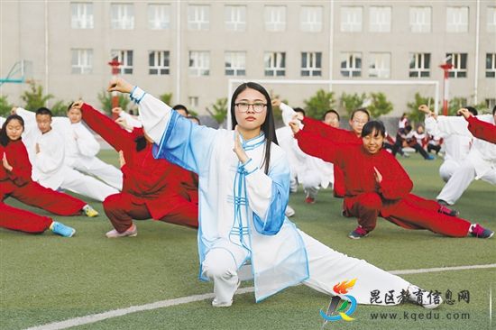 包钢三中开展的德育活动丰富多彩。图为学校艺术节初二六班师生太极拳表演
