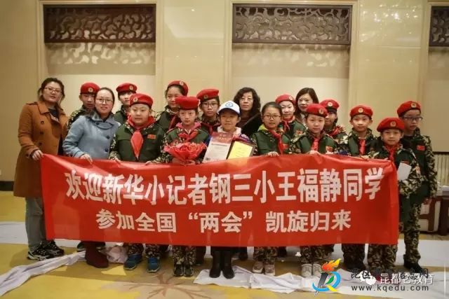 欣逢全国“两会”盛事,昆区钢三小五年级联合中队的王福静队员作为小记者全程参与了全国人大代表、委员的采访活动,见证并记录了这一举国上下共同关注的政治盛会。近日,王福静队员所在的包头新华小记者团队凯旋归来,钢三小校长赵文雍亲自率队迎接小记者,带着鲜花、礼物送去钢三小全体师生的祝贺。