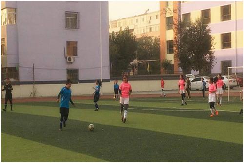 青松小学这支女足队伍,成立于2015年,历经三载春秋,不畏严寒酷暑坚持训练。尤其是2017年,由于学校进行校舍改扩建工程,没有训练场地,包四十三中给予大力的支持和帮助,为运动员提供训练场地,教练员和运动员们每天一早先来到学校集合,然后再去四十三中进行训练。每天最早来到学校的是她们,最晚离开学校的还是她们,队员们不厌其烦的训练基本功、技战术。
