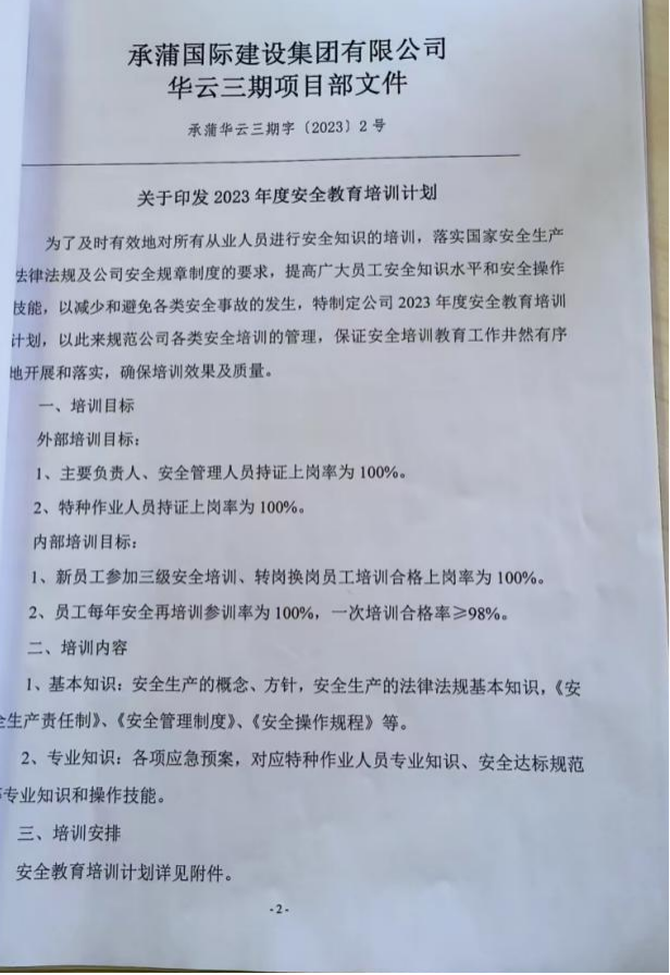 (五)承蒲国际建设集团有限公司华云三期项目部(包头)制定了全员安全培训教育实施方案,开展了全员安全培训教育。同时企业组织开展了事故反思会、专题学习分析会,使广大员工从中受到教育,牢记教训,引以为戒。