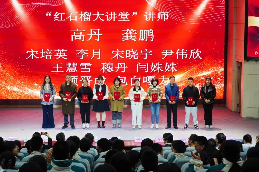包头六中成功举办 “红石榴”大讲堂启动仪式 11月1日下午,包头市第六中学成功举行“红石榴”大讲堂启动仪式。仪式紧密围绕铸牢中华民族共同体意识主线,以中华民族一家亲,同心共筑中国梦为主题,坚持弘扬和培育爱国主义精神,不断树立家国情怀,把民族团结立足于心,实践于行。参加本次活动的领导有市府东路街道党工委书记高丹、市府东路街道副主任马海迪,昆区教育系统党工委办公室主任赵欣、市府东路街道金华社区党委书记马郁以及昆区教育系统党工委干事刘雪婷,包头市博物馆党务干部王娜,包头六中领导班子成员出席会议。 活动第一项,学校党总支书记卢蒙致辞。卢蒙书记首先对与会来宾表示欢迎,希望通过“红石榴”大讲堂活动推动各族师生学习铸牢中华民族共同体意识的热情,凝聚多方力量,采取“请进来、走出去”的模式,以邀请专家讲解、思政教师团队主讲,校领导班子宣讲为抓手,把各族学生学习课堂延伸到社区、博物馆,积极推动打造各族学生交流“红石榴”活动品牌,不断促进各族学生的广泛交往、全面交流、深度交融。 第二项,启动仪式正式开始,与会领导共同按下启动按钮,大家怀揣着对民族团结的无限热忱,共同踏上了一场传递民族意识、深化民族团结的旅程。 接着,学校宣布了受聘的宣讲老师名单,学校特聘请市府东路街道党工委书记高丹、包头市博物馆社教部主任龚鹏为“红石榴”大讲堂校外讲师,赵欣主任和卢蒙书记为她们颁发了聘书,刘雪婷干事为我校受聘教师颁发聘书。随后主持人宣读了本学期宣讲安排。 教师代表和学生代表分别发言。宣讲团讲师代表宋晓宇表示,将充分发挥自身优势,深入挖掘民族团结故事的精神内涵和时代价值,开展高质量的民族团结宣讲教育。学生代表吴诗懿发言表达了对学习的热情和期待,表示将认真聆听、深入思考,将学习成果转化为实际行动。 活动最后,一场精彩的诗朗诵《石榴花开心向党》表达了学生对民族团结的拳拳热忱,整场活动气氛庄重而热烈。 此次“红石榴”大讲堂启动仪式的成功举办,不仅为各族师生提供了一次宝贵的学习机会,也为学校的党建工作注入了新的活力。我校按照昆都仑区教育局将铸牢中华民族共同体意识教育贯穿于教书育人、办学治校全过程的思路,将不断探索民族工作新思路、新方法,为培养更多德智体美劳全面发展的优秀人才贡献力量。 END